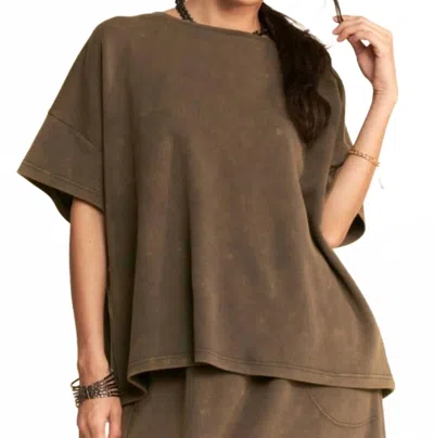 The short sleeve tee you'll want in every color.Introducing the Viva Las Vegas Top by Davi & Dani, a stylish addition to your vacation wardrobe. This cozy oversized tee in a muted bronze hue features short sleeves and a relaxed fit, crafted from a blend of 50% rayon, 45% polyester, and 5% spandex. Designed with a crewneck and wide sleeve style, it offers effortless comfort and a touch of earthy elegance, perfect for pairing with your favorite jeans or shorts. Made for easy care, simply hand wash cold and hang to dry, avoiding ironing, bleaching, or tumble drying. Available in S (Shoulder 26", Bust 25", Length 23", Sleeve 4"), M (Shoulder 27", Bust 26.5", Length 23", Sleeve 4"), and L (Shoulder 28.5", Bust 28.5", Length 23", Sleeve 5").