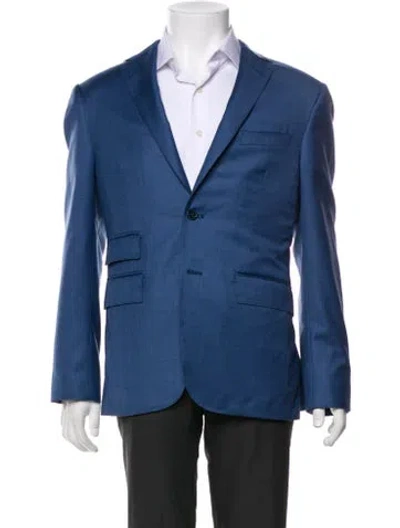 David August Blazer Blue Notched Lapels & Double Vents Satin Lining Two-Button Closure at Front Fit: Suiting by David August typically fit true to size. | David August Blazer in Blue, Men's XL