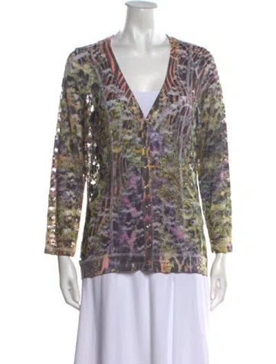 David Cline Nylon Cardigan Printed Long Sleeve with V-Neck | David Cline Nylon Printed Sweater, Women's L