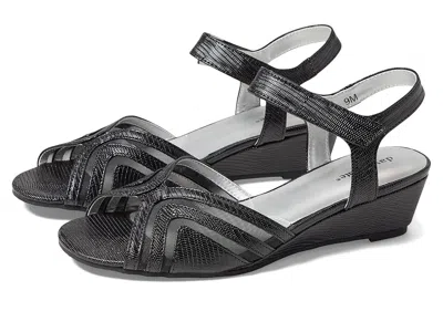 David Tate Admire - Women's Shoes : Black Lizard Print : Perfect for evening parties or festive nights, the David Tate Admire Wedge Heels are beautifully designed with a lizard-embossed strappy upper with mesh inserts coupled with a low wedge heel. ; Leather upper. ; Synthetic lining. ; Comfort padded insole. ; Hook-and-loop strap closure on the ankle. ; Round open toe. ; Rubber outsole. ; Imported. Measurements: ; Heel Height: 2 in ; Weight: 8 oz ; Product measurements were taken using size 9, width M (B). Please note that measurements may vary by size. | David Tate Admire Women's Shoes Black Lizard Print : 12 WW (EE), Leather