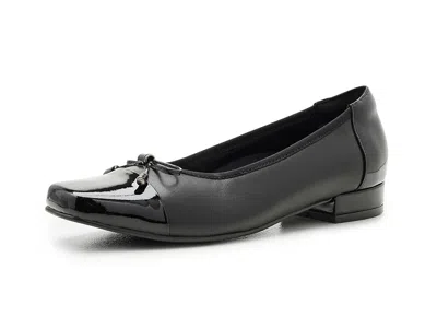 David Tate Amiya - High Heels : Black Leather/Patent Leather : Introducing the David Tate Amiya shoes, elegant and timeless low-heeled pumps that masterfully combine classic style with modern comfort. Featuring a sophisticated bow tie vamp and a chic patent leather tip, these heeled shoes are designed to elevate any outfit, making them perfect for both special occasions and everyday wear. Experience ultimate comfort with their removable cushioned footbed, elegantly covered in Nova suede and designed with arch support to keep your feet feeling fantastic all day long. These slip-on pumps are made of a nappa leather upper featuring a matching tip crafted from patent leather. Their nylon lining provides added comfort, while the luxurious suede-covered padded heel grip is designed to give you that perfect fit every step of the way! ; Round toe shape. ; Chic rubber outsole not only ensures all-day comfort but also keeps your look effortlessly elegant. ; Imported. Measurements: ; Heel Height: 1 2 in ; Weight: 8 oz ; Product measurements were taken using size 7, width M (B). Please note that measurements may vary by size. | David Tate Amiya High Women's Heels Black Leather/Patent Leather : 6.5 WW (EE), Leather/Suede