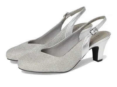 David Tate Avenue - Women's Shoes : Silver : The David Tate Avenue is a stunning and sophisticated slingback pump, crafted from exquisite sparkle fabric that catches the light beautifully. Designed for both style and comfort, it showcases a plush suede-covered footbed that cradles your feet for all-day wear. The shoe is balanced on a sturdy rubber heel, providing exceptional stability, while the elegant leather-wrapped French heel adds a touch of refinement to your look. Step into the Avenue and elevate your ensemble with unparalleled grace and charm! ; Nylon upper and lining. ; Cushioned insole. ; Adjustable buckle closure at the slingback strap. ; Padded suede insert. ; Low-top profile. ; Rounded toe design. ; Rubber outsole for added comfort. ; Imported. Measurements: ; Heel Height: 2 in ; Weight: 13 oz ; Product measurements were taken using size 7, width N (AA). Please note that measurements may vary by size. | David Tate Avenue Women's Shoes Silver : 7.5 M (B), Synthetic