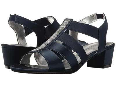 David Tate Eve - Women's Dress Sandals : Navy Stain : Look fabulous in the head-turning Eve sandal. ; Fabric uppers. ; Shimmer the night away with the David Tate Eve, a strappy evening sandal constructed using high-quality satin with a crystal-encrusted center strip for a flash of sparkle. ; Elastic stretch bands. ; Slip-on design features elasticized heel strap for easy on and off. ; Slip-on design with stretch at the ankle. ; Top two bands are elasticized, providing a flexible and secure fit. ; Lightly cushioned footbed. ; Open, rounded square toe with foam padded insole. ; Wrapped block heel. ; Man-made lining and footbed. ; Durable man-made outsole. ; Satin-wrapped block heel. ; Imported. ; Flexible rubber sole. Measurements: ; Heel Height: 1 3 4 in ; Weight: 7 oz ; Product measurements were taken using size 8.5, width WW (EE). Please note that measurements may vary by size. | David Tate Eve Women's Dress Sandals Navy Stain : 12 W (D), Satin