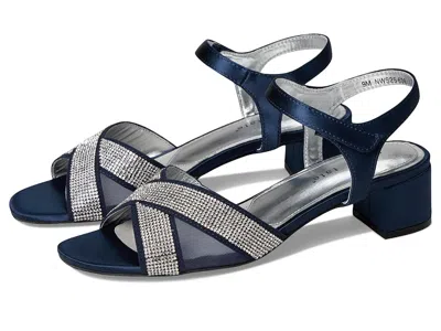 David Tate Holiday - Women's Sling Back Shoes : Navy : Rhinestone-encrusted straps add to modern style to the David Tate Holiday heeled sandal. ; Adjustable ankle strap with hook and loop closure. ; Textile and synthetic upper. ; Leather lining. ; Cushioned footbed. ; Block heel. Measurements: ; Heel Height: 2 1 2 in ; Weight: 5 oz ; Product measurements were taken using size 7, width WW (EE). Please note that measurements may vary by size. | David Tate Holiday Women's Sling Back Shoes Navy : 10 W (D), Synthetic/Textile