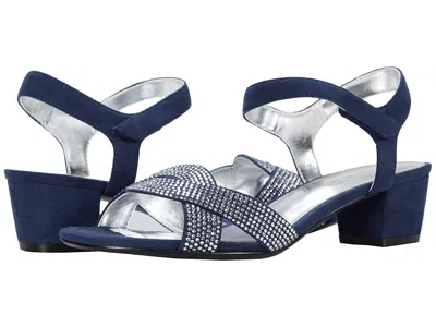 David Tate Rain - Women's Shoes : Navy : Nothing will offer the glitz and the glamour like the David Tate Rain heeled sandal. The strappy leather upper features a crisscross toe strap with rhinestones galore to give it an extra pop. ; Man-made lining and insole. ; Covered block heel. ; Rubber outsole. ; Imported. Measurements: ; Heel Height: 1 1 2 in ; Product measurements were taken using size 8, width M (B). Please note that measurements may vary by size. | David Tate Rain Women's Shoes Navy : 13 WW (EE)