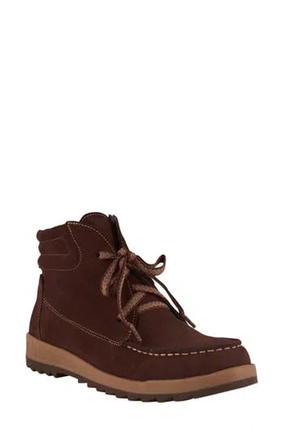 A moc-stitched toe enhances the earthy vibes of a lace-up bootie set on a well-cushioned insole. 1 1/4" heel 4 1/4" shaft Removable, cushioned insole Flexible, traction-enhancing outsole Leather upper/synthetic lining/rubber sole Imported