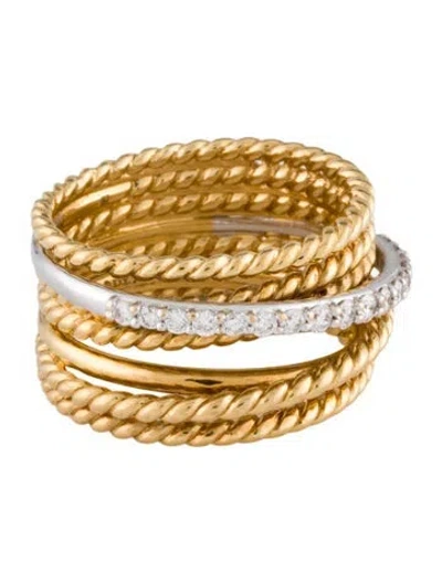 From the DY Crossover Collection Rhodium-Plated 18K White Gold & 18K Yellow Gold Includes Jewelry Pouch | David Yurman 18K Diamond Crossover Ring, Women's 5.5
