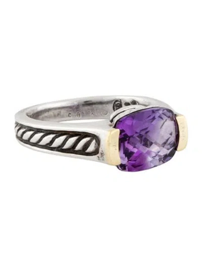 Sterling Silver & 18K Yellow Gold Includes Designer Box, Jewelry Pouch & Polishing Cloth | David Yurman Amethyst Cocktail Ring, Women's 6