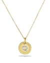 18-karat yellow gold Pav diamonds, 0.01 total carat weight Pendant, 10mm diameter Adjustable chain, 16-18" long