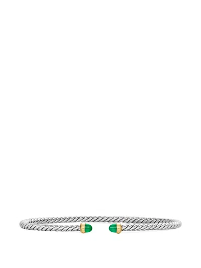 David Yurman’s artistic signature, Cable began as a bracelet that he hand-twisted from 50 feet of wire. For over 40 years, he has evolved the twisted helix into a myriad of designs. sterling silver with 14-karat yellow gold emeralds Bracelet, 2.6mm Nitinol core to provide flex movement. Normal everyday use and external agents may reduce the lustre of gemstones and gold surfaces. To maintain, use specific, non-abrasive products specially meant for cleaning jewellery.