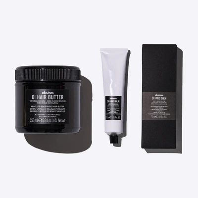 Set to soften and hydrate the hair and hand. OI hair butter and Oi hand balm The Perfectly Hydrated hair and hands set helps to soften and hydrate the hair and hand. OI Hair Butter is formulated with Roucou oil, which gives extraordinary shine and softness to any kind of hair. The OI hand balm is a nourishing hand cream with antioxidant action, suitable for all skin types. The special formula protects skin from damage caused by sun, wind and cold, and provides long-lasting hydration Davines Hydrated Hair & Hands Set Set To Soften & Hydrate The Hair & Hand 2 pz