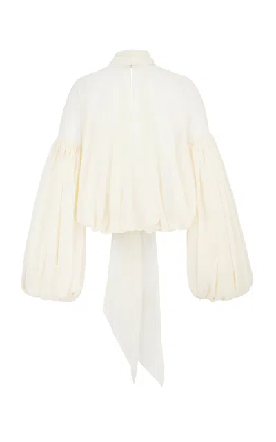 De La Vali is an ode to the design-duo's muse 'Vali Myers'; a visionary artist; dancer and bohemian whose extroverted and vivacious way of being captivated all who she encountered. In turn; the label's striking statement pieces are designed for confidence and empowerment when worn.The 'Solana' top has a ballooning silhouette made from cream-colored crepe with an elegant tie neck. Use the hook and eye closure to adjust the deepness the neckline. Complete the look with the [Agapito skirt](https://www.modaoperandi.com/women/p/de-la-vali/agapito-skirt/731083).