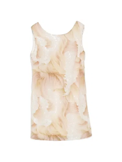 beige sequin embellishment sleeveless round neck