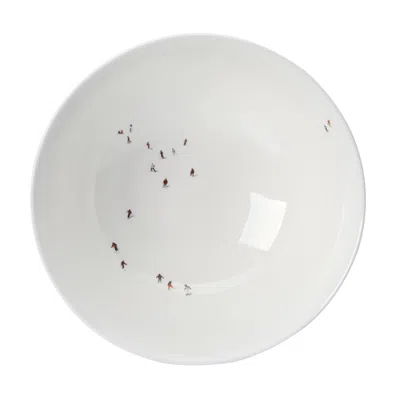 Skiers Serving Bowl from the Skiers China range by Dede Johnston. Imagery taken from her 2008 photograph 'Crowded Slopes'. Manufactured in fine bone china in Staffordshire, England. Dishwasher and microwave safe. Made in Staffordshire, England Dishwasher and microwave safe