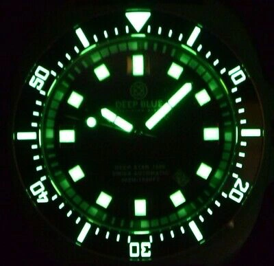Deep Blue Deep Star 1000 Vintage Swiss Automatic Men's Diver Watch Black Ceramic Bezel / Mesh Bracelet Model: DSTARBLACKVINTRBC Case Shape: Round Case Back: Exhibition Case Material: Stainless Steel Case Measurements(mm): 45 Case Thickness(mm): 15 Lug to Lug(mm): 52 Movement Type: Automatic Movement: Sellita Sw-200 Movement COA: Switzerland Movement: 26 Jewels, 28.800 VPH Strap: Stainless Steel Strap Color: Steel Clasp: Fold-Over Push-Button Deployant Band Width(mm): 22 Dial Color: Black Luminous: Hands and Hour Marks Bezel Type: Uni-Directional Bezel Material: Ceramic Bezel Color: Black Crystal Type: Sapphire Crown Type: Screw Down Water Resistance: 30 ATM Functions: Date/Hours/Minutes/Seconds Display Type: Analog Additional Features: Helium Valve Release Condition: New Chronotiempo SKU: 580700105101 PAYMENT SHIPPING We process and ship all orders from our Elmhurst IL USA HQ. Orders placed Monday through Friday (excluding national holidays) will be processed and shipped within 1 business day once credit card
