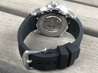 Deep Blue Master 1000 II 44mm Automatic Men's Diver Watch Black Blue Ceramic Bezel Black Dial Orange Hands Batman MSTR442BTMNBLKORG Strap Strap: DB Silicone Strap Color: Black Strap Measurements: 8-1/2" L x 22mm W Band Width: 22mm Case Case Shape: Round Case Back: Stainless Steel Exhibition Case Measurements: 44mm Case Thickness: 15mm Movement Movement Type: Automatic Movement: Caliber Seiko NH 35 Movement COA: Japan Features Dial Color: Black Dial Material: Enamel Luminous Features: Hands and indices Bezel Type: Uni Directional Crystal Type: Sapphire Crown Type: Screw down Water Resistance: 330 meters Complications: Date Function Bezel Material: Ceramic Bezel Color: Black/Blue Display Type: Analog Additional Features: Helium Release Valve, Date Model: MSTR442BTMNBLKORG Condition: New CT SKU: 580700105701 PAYMENT SHIPPING We process and ship all orders from our Elmhurst IL USA HQ. Orders placed Monday through Friday (excluding national holidays) will be processed and shipped within 1 business day once credit