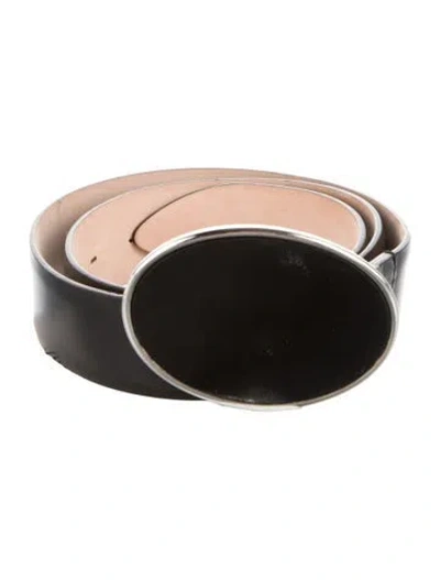 Déhanche Belt Black & Silver Leather Silver-Tone Hardware Peg-In-Hole Closure Unfortunately, due to restrictions, this item may not be eligible for shipping in all areas. | Déhanche Leather Belt in Black/Silver, Women's S