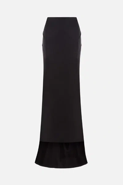 Del Core's long skirt crafted in black envers satin. Featuring back hook-and-eye / invisible zip closure and train at hem.