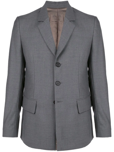 Grey wool single-breasted blazer from DELADA featuring notched lapels, long sleeves, a front button fastening and flap pockets.