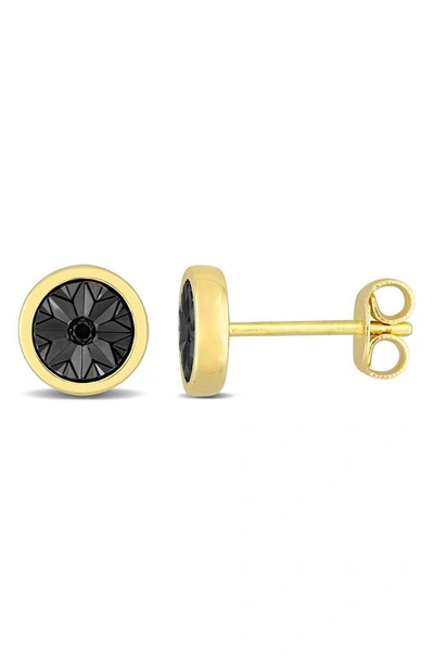DELMAR Two-tone Sterling Silver Black Diamond Round Stud Earrings