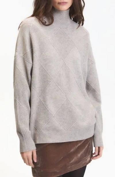 A diamond pattern in mixed stitches textures a roomy turtleneck sweater that features a relaxed profile perfect for how you live now. Mock neck Long sleeves Dropped shoulders Ribbed cuffs and hem 61% viscose, 39% polyamide Hand wash, dry flat Imported