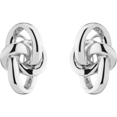 A knotted design gives scene-stealing style to dimensional stud earrings with a high-shine finish. 1" drop; 5/8" width Post back Silvertone plate Imported