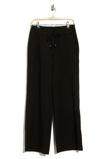 Polish up your weekend ensembles with these pull-on pants styled with a straight leg and handy pockets. 30" inseam; 25" leg opening; 10 1/2" front rise; 16" back rise Elastic/drawstring waist Front slant pockets 67% rayon, 28% nylon, 5% spandex Machine wash, line dry Imported