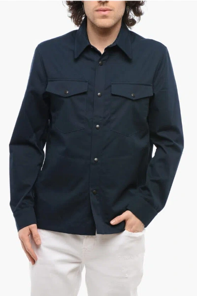 Cotton Twill Blend Color Overshirt With Snap Buttons In Black