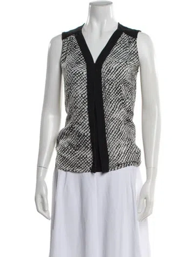 Derek Lam Silk Blouse Black & White Patterned Sleeveless with V-Neck Size not listed, estimated from measurements. Designer Fit: Tops by Derek Lam typically fit true to size. | Derek Lam Silk Patterned Blouse in Black/White, Women's XS