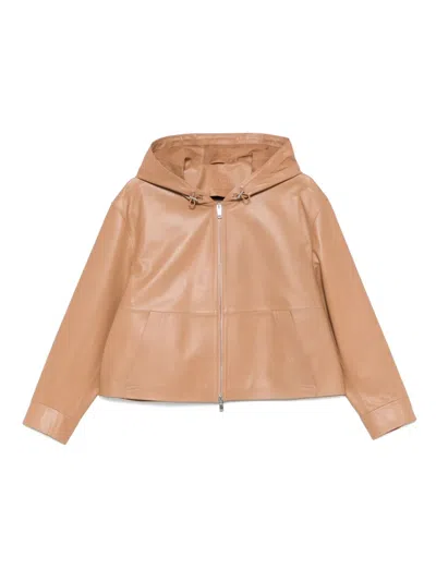 light brown front two-way zip fastening drawstring hood two side slit pockets press-stud fastening cuffs