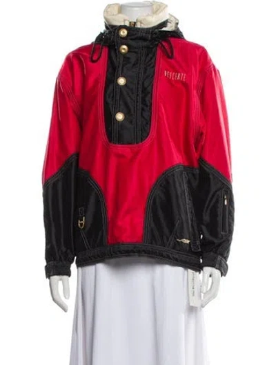 Descente Jacket Red Colorblock Pattern With Hood Stand Collar Slit Pockets & Zip Closure Fit: Jackets by Descente typically fit true to size. | Descente Colorblock Pattern Jacket in Red, Women's M