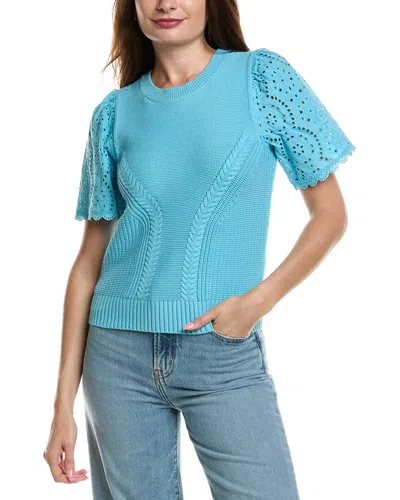 DESIGN HISTORY Eyelet Sleeve Sweater In Blue