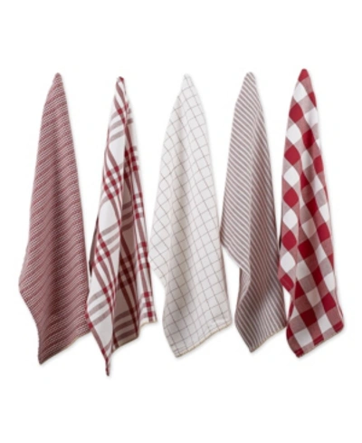 DESIGN IMPORTS Farmhouse Woven Dishtowel, Set Of 5 In Red