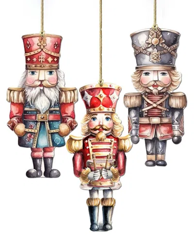 DESIGNOCRACY Nutcrackers Christmas Ornaments, Set Of 3 In Multi