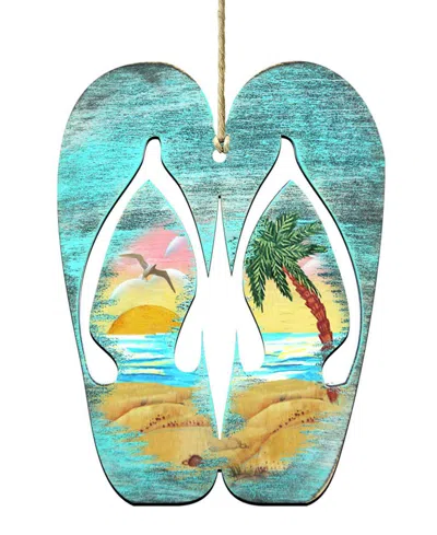 DESIGNOCRACY Rustic Flip Flops Wooden Ornament In Multi