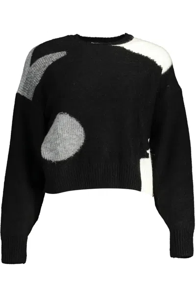 Step out in style with this elegant and comfy long-sleeved sweater featuring a round neck and eye-catching contrasting details. The bold logo adds a dash of uniqueness to the piece, making it a striking addition to your wardrobe. Perfect for those looking to merge style with comfort. Crafted by the renowned brand Desigual.. Material: 34% Polyester, 2% Elastane, 55% Acrylic, 9% Polyamide. Country of origin: CN. Color: Black. .