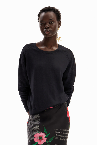 A fine-knit pullover with a plain body and long sleeves in jacquard with a tone-on-tone floral design.Fit: RegularJacquard with flowers, openwork and different texturesRound neckLong sleevesBy buying Desigual cotton products, you are supporting our investment in Better Cotton. This product is sourced via a system of mass balance and may not contain Better Cotton. bettercotton.org/massbalance