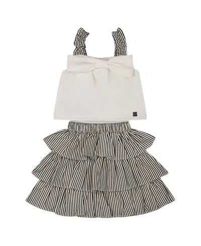 Deux par Deux Girls' Bow Top and Ruffled Skirt Set - Little Kid