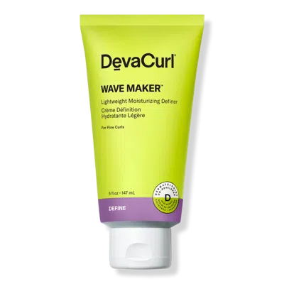 DEVACURL WAVE MAKER 5OZ. Benefits: Gives fine curls ultimate curl flexibility. Maintains moisture, hydrates & smoothes curls. Encourages curl shape & definition. Tames frizz up to 48 hours. Non-flaking, non-stiff & non-crunchy. Features: Hydra-definition blend enhances curl body and shape, adds shine, encourages curl clumping, improves manageability and combability & minimizes flyaways. Dermatologist co-developed, backed by science & stylist approved. A crisp, uplifting juicy Bright Breeze scent that starts with notes of pomegranate, raspberry and salty melon, followed by waterlily & gardenia and finishes with sandalwood, cotton candy and musk. Tubemadefrom 30% recycled plastics. Gluten-free, cruelty-free & vegan. Formulated Without: SLS/SLES sulfates. Silicones. Parabens.