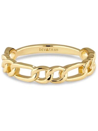 Figaro Link Ring features refined design inspired by the classic Figaro chain with smooth, polished finishes, each piece embodies strength, unity, and timeless elegance. Set in gold plated sterling silver. Crafted in sterling silver, stamped 925 to certify 925 silver. Finished in gold electroplating with thickness of 20 mils or 0.5 microns. Warm 14K golden glow, the perfect golden shine for everyday look. Arrives beautifully packaged in a luxury leather pouch, a sweet gift for your loved one or to reward yourself.