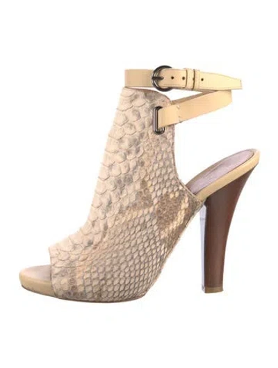 Pre-owned Python Animal Print Slingback Sandals In Neutral
