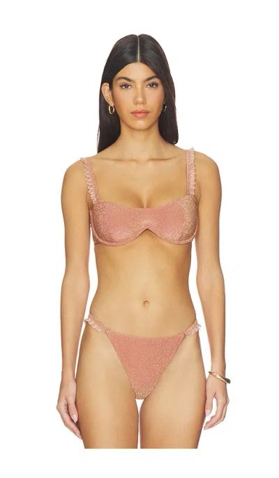 DEVON WINDSOR Bonnie Top in Rose. - size XS (also in L, M, S, XL) DEVON WINDSOR Bonnie Top in Rose. - size XS (also in L, M, S, XL) Self: 83% nylon 11% metallic fibers6% spandex Lining: 88% nylon 12% spandex Contrast Fabric: 85% polyester 10% elastane 5% nylon. Hand wash. Underwire cups. Back S-hook closure. Scalloped detailing at shoulder straps. Lightweight metallic swimwear fabric. Item not sold as a set. DVWS-WX402. SP26622T. DEVON WINDSOR launched with a collection of fashion forward swimwear in 2019. Made of luxurious Italian and Brazilian fabrics, the line incorporates refined details and unique hardware on styles including high cut bikinis, belted and cut out full-piece suits. Since its debut, the collection has expanded to offer an array of stylish resort wear and cover ups for both on and off the beach. Easy, wearable styles including cropped jackets, mini skirts, and knit dresses make for confident looks with minimal effort.
