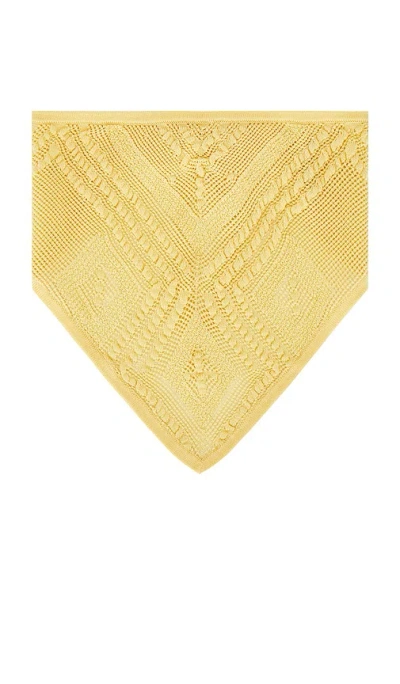 DEVON WINDSOR Crochet Bandana in Yellow. DEVON WINDSOR Crochet Bandana in Yellow. 47% Viscose 31% Polyester 22% Tencel. Dry clean. Tie closure. Triangle bandana silhouette. Hand-crocheted texture. DVWS-WA35. SP26671H. DEVON WINDSOR launched with a collection of fashion forward swimwear in 2019. Made of luxurious Italian and Brazilian fabrics, the line incorporates refined details and unique hardware on styles including high cut bikinis, belted and cut out full-piece suits. Since its debut, the collection has expanded to offer an array of stylish resort wear and cover ups for both on and off the beach. Easy, wearable styles including cropped jackets, mini skirts, and knit dresses make for confident looks with minimal effort.
