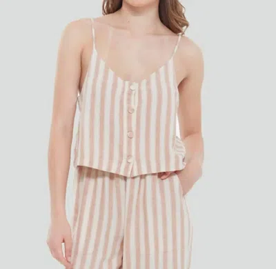 DEX Button Front Striped Camisole In Taupe In Pink