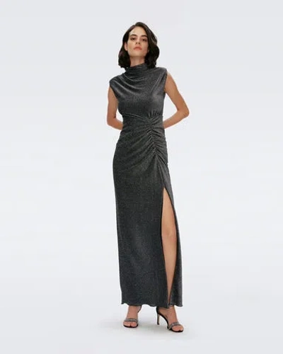 DIANE VON FURSTENBERG Apollo Ruched Metallic Stretch-knit Maxi Dress In Silver