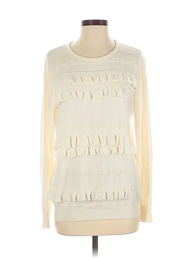 Diane von Furstenberg Pullover Sweater, Size: Medium. Item Details: Ivory, Ruffles Neckline, Long Sleeve, Women's Tops, Wool/Viscose/Lycra