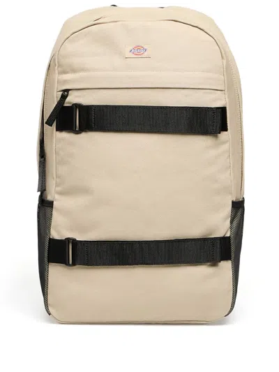 beige duck canvas material skate-style straps mesh pocket to the side all-around zip fastening padded back panel