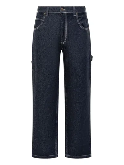 dark blue multiple pockets contrast stitching straight leg button fly reinforced seams