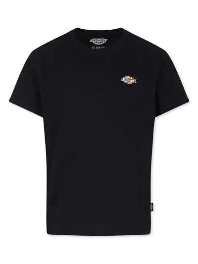 black cotton logo print at the chest crew neck short sleeves straight hem