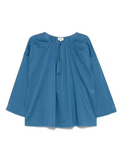 imperial blue front button fastening crew neck gathered detailing long sleeves